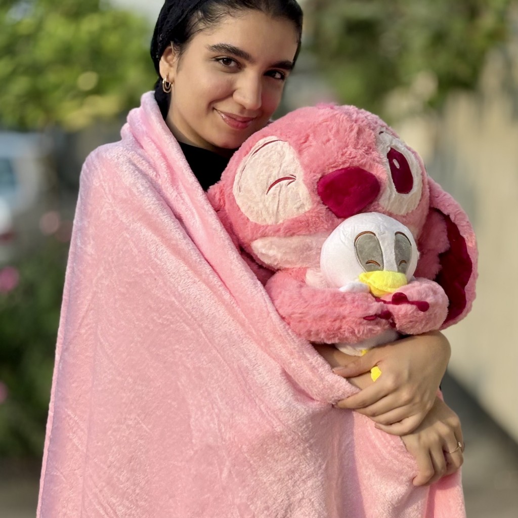 پتو بالشتی استیچ صورتی عروسک به دست