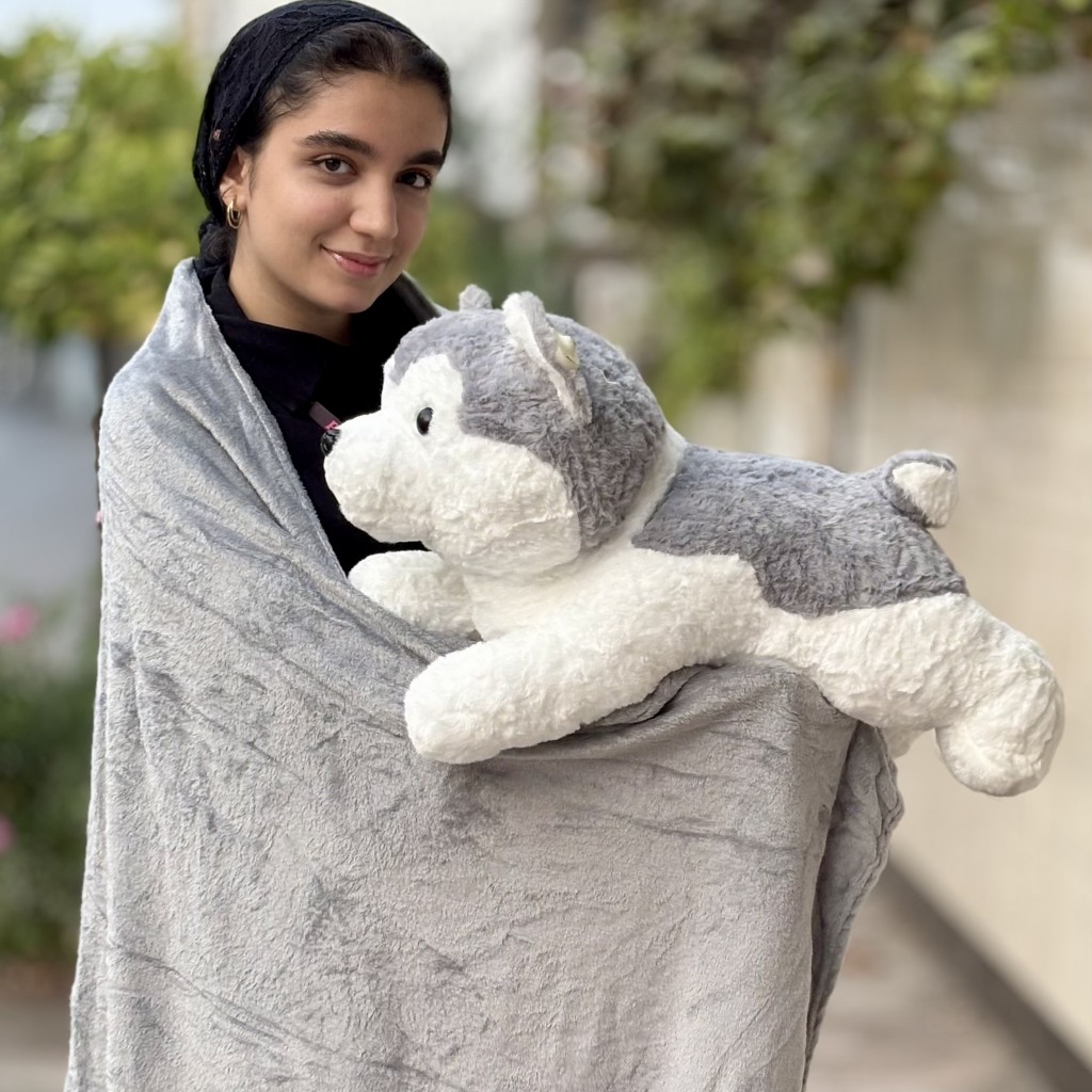 پتو بالشتی سگ نشسته طوسی
