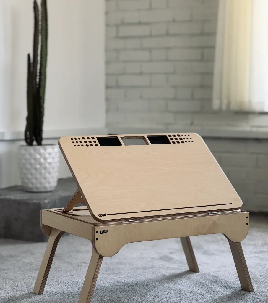 هنوز هم بسیاری از هنرمندان، کار کردن روی زمین و به صورت نشسته را نسبت به روی میز، ترجیح میدهند. برای این کار به میزی با ارتفاع کم نیاز است که جلوی خم شدن کمر و گردن را گرفته، و شرایطی ایده آل برای کار کردن طولانی مدت را فراهم آورد