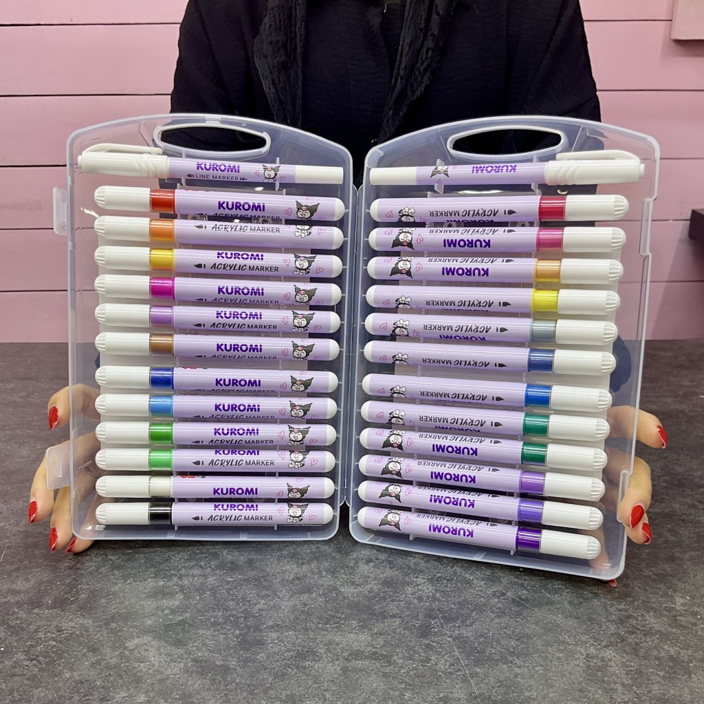 ماژیک اکرولیک ۲۴رنگ به همراه دو عدد ماژیک دوسر مشکی(رنگ ثابت)